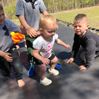 While David and I were getting food cooked, hanging out… the kids found a trampoline across the road.. I heard it was torn apart and the kids put it back together.. 😬
