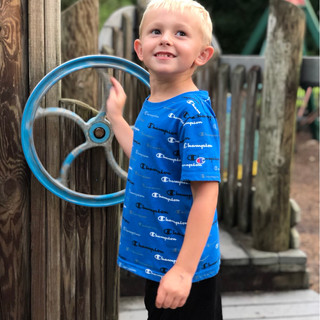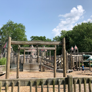 We strolled around the campground and Luke checked out the awesome wooden playground.