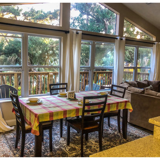 We head over the bridge to the Publix on the island to grab our goodies... and the boys say, “finally we are at the house!“ We love the tropical feel of the house with the trees all around!
