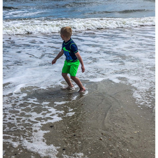 Hayden‘s favorite was climbing the boulders, searching for shells, and just being Hayden.. Luke is all about building sand castles and searching for shells!