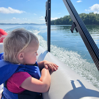 9:20AM Loaded up and heading out to explore the lake .. Yes, this is the lake our vacation home is being built on! So it is time to explore the lake from the water! ... let's find our property! It is a little cloudy but clearing out and the sun is peeking through!