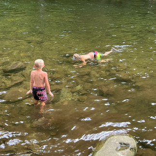 Kids want to play in the little river ..the water is 🥶.. I thought I would get in.. I don't know how they are swimming! My feet in the water is far enough for me!